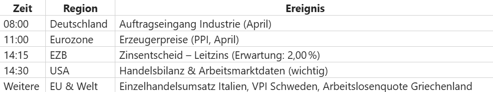 Der 5. Juni 2025 wird von einem zentralen Ereignis bestimmt: dem Zinsentscheid der EZB.